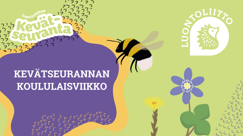 Järjestämme 7.–12.4. kevätseurannan koululais- ja opiskelijaviikon, jolloin havaintoja voi poikkeuksellisesti raportoida myös arkipäivinä osallistumisen helpottamiseksi. Koululaisviikolla kannustamme oppilasryhmiä ympäri Suomen kevätseurantaretkelle.