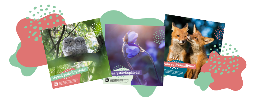 Onnittele läheistäsi kortilla ja tue samalla toimintaamme. Luontoliitto lähettää viiden kortin paketin keväisin ja joulun alla.