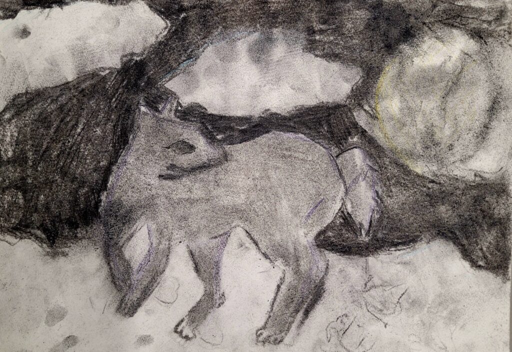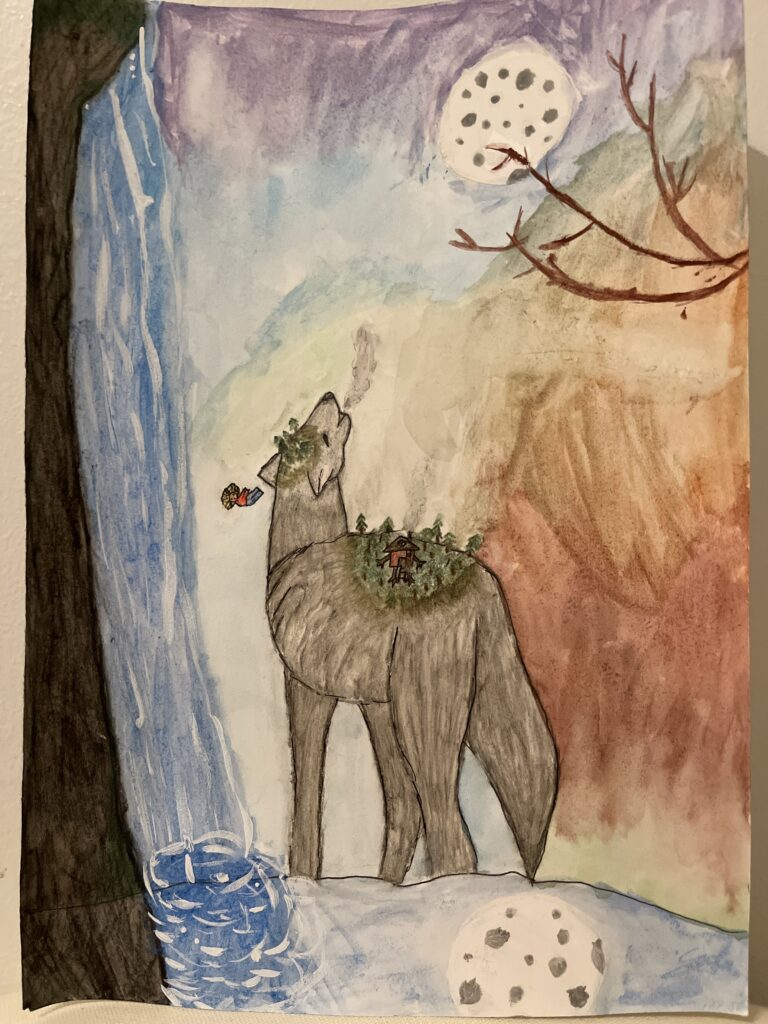 Elli Punavuori, 9 v.: ”Yksinäinen susi, joka on talvipakkasessa”