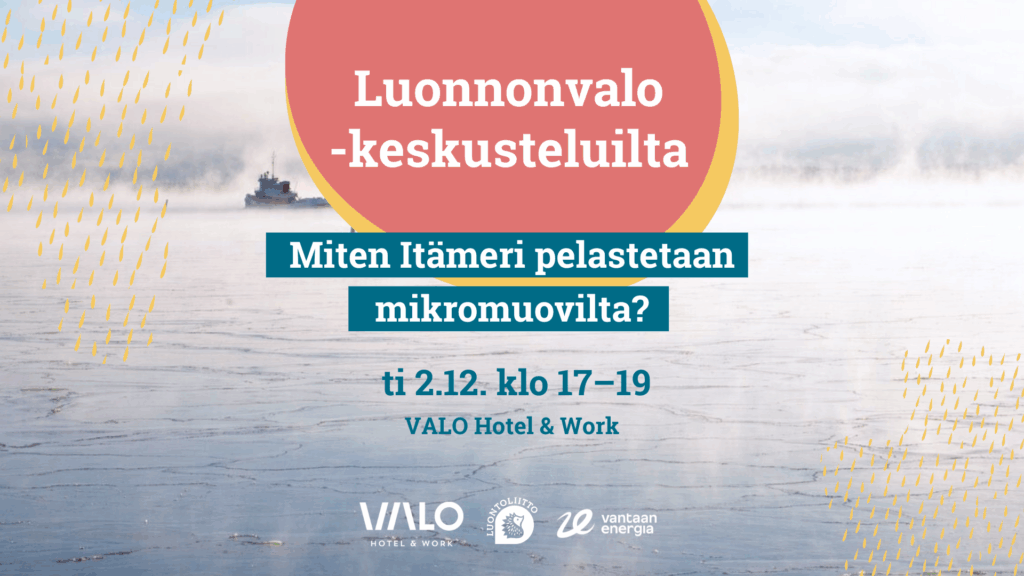 Vantaan Energian ja Luontoliiton järjestämässä keskustelutilaisuudessa pohditaan luontotoimittaja Kerttu Kotakorven johdolla siitä, miten mikromuovin leviämistä ympäristöön, erityisesti vesistöihin, voidaan ehkäistä.