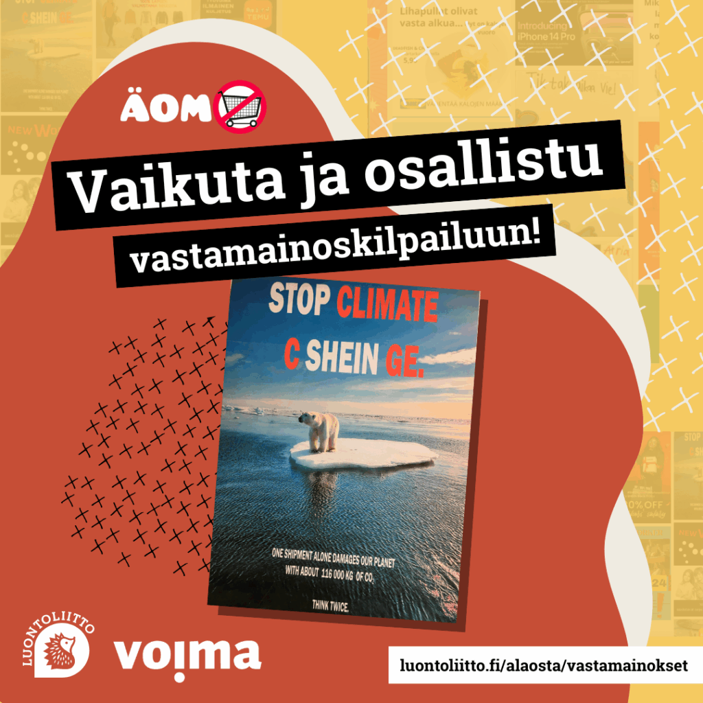 Luontoliitto järjestää vuosittain kaikille avoimen vastamainoskilpailun. Kilpailuun voivat osallistua kaikki 10 vuotta täyttäneet. Teoksen voi tehdä yksin tai kaverin kanssa.